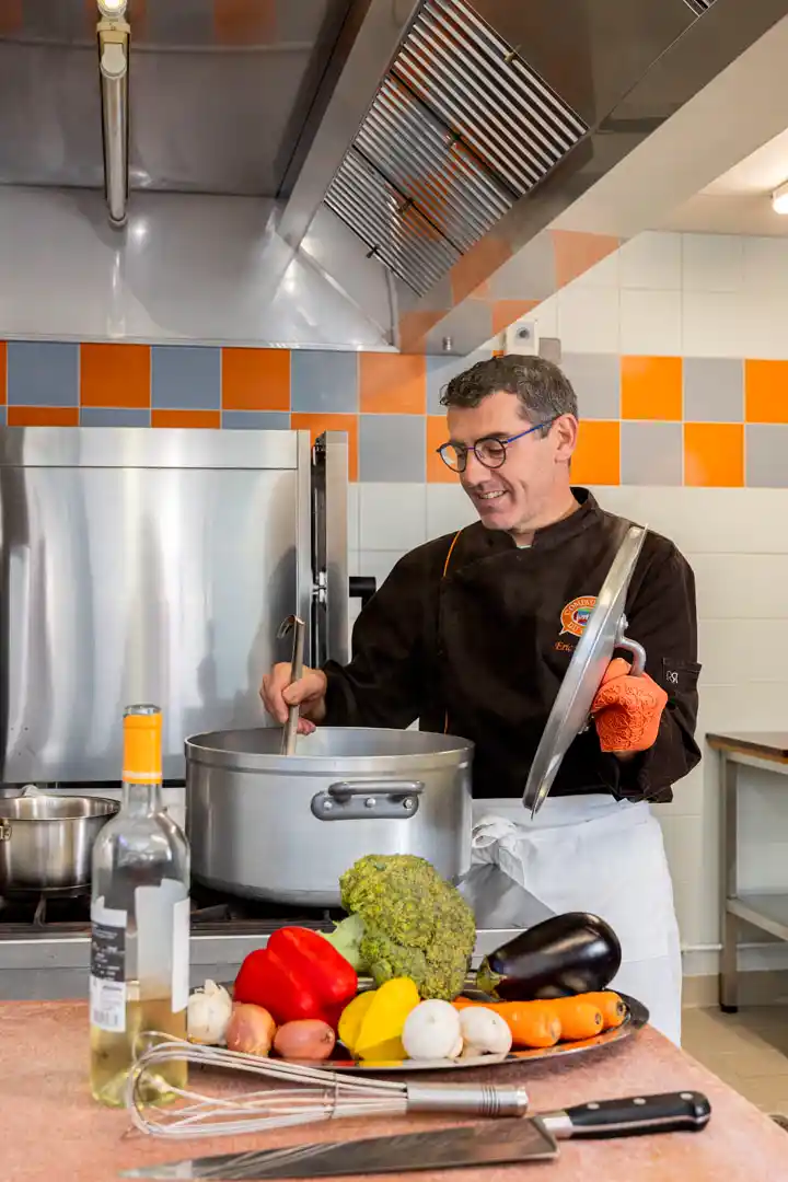 Eric propose des déjeuners maison aux personnes qui louent les salles, mais aussi des préparations